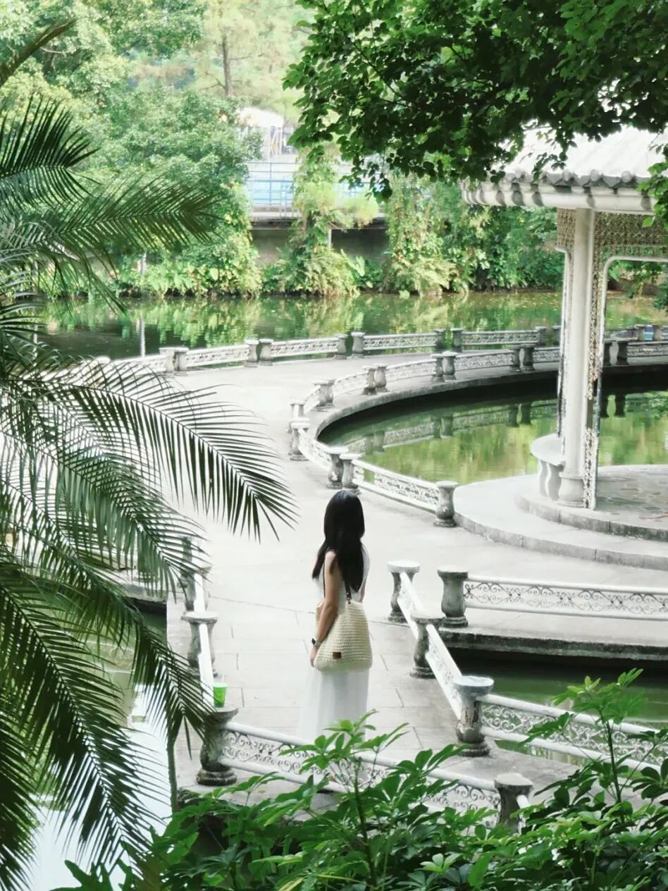 从秀丽湖牌坊进去,过了大桥左转,沿着路往左手边看就能看到荷风亭。一路仿佛瞬间穿越进童话秘境,层层叠叠的香樟树绿叶编织成天然穹顶!