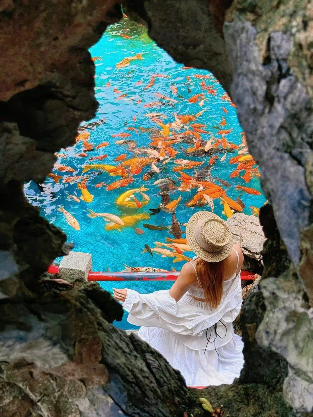 从祖庙正门验票进入后右转直走,进入孔圣园,往许愿树方向走,就可以看到假山和锦鲤池。下午两三点的时候,能拍到阳光洒在人身上,更加出片!