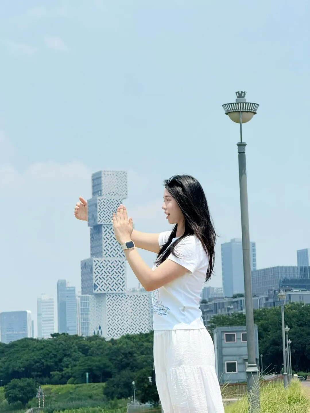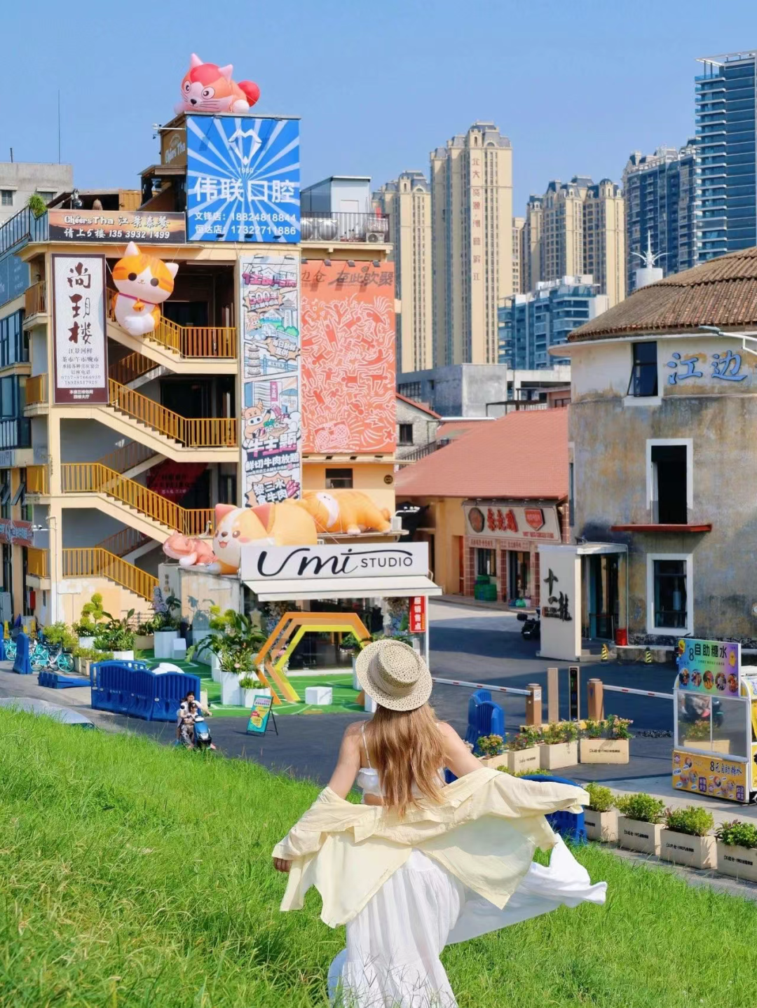 电影《热辣滚烫》取景地!大堤下楼梯,一片绿油油大草坪,不少人在拍婚纱照。整条街都是小食和咖啡店,超适合看日落!