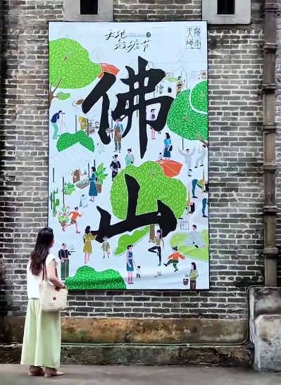 岭南天地的“佛山”墙很出片,连明星高圆圆都来打卡。不同时期还会更换不同主题颜色,十分应景。